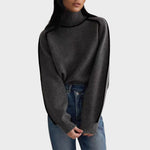 Esta camisola combina simplicidade e detalhe, com bordas contrastantes e um design de gola alta descontraído. A sua silhueta ampla torna-o perfeito para usar por cima de outras peças, proporcionando um visual limpo e sofisticado.