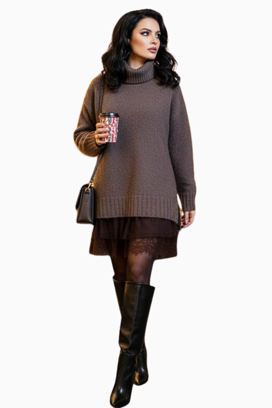 Conjunto 2 Peças - Malha de Gola Alta & Vestido com Saia de Renda