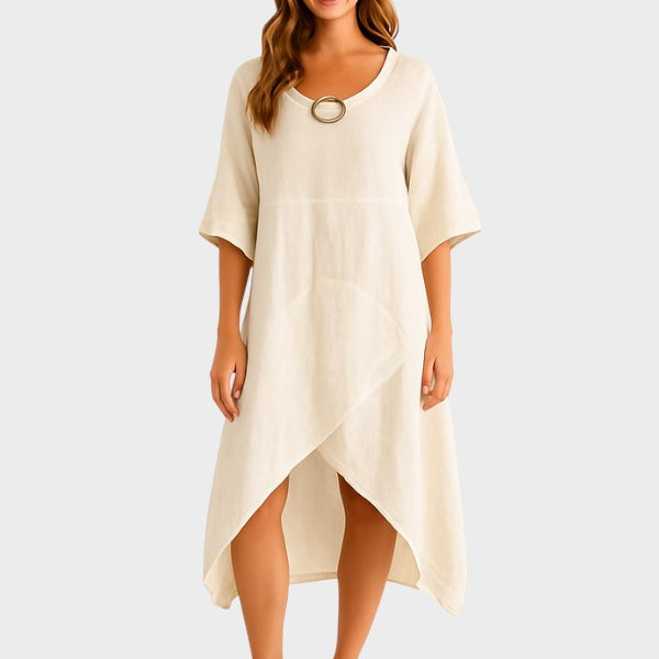 Marta - Vestido assimétrico em algodão e linho