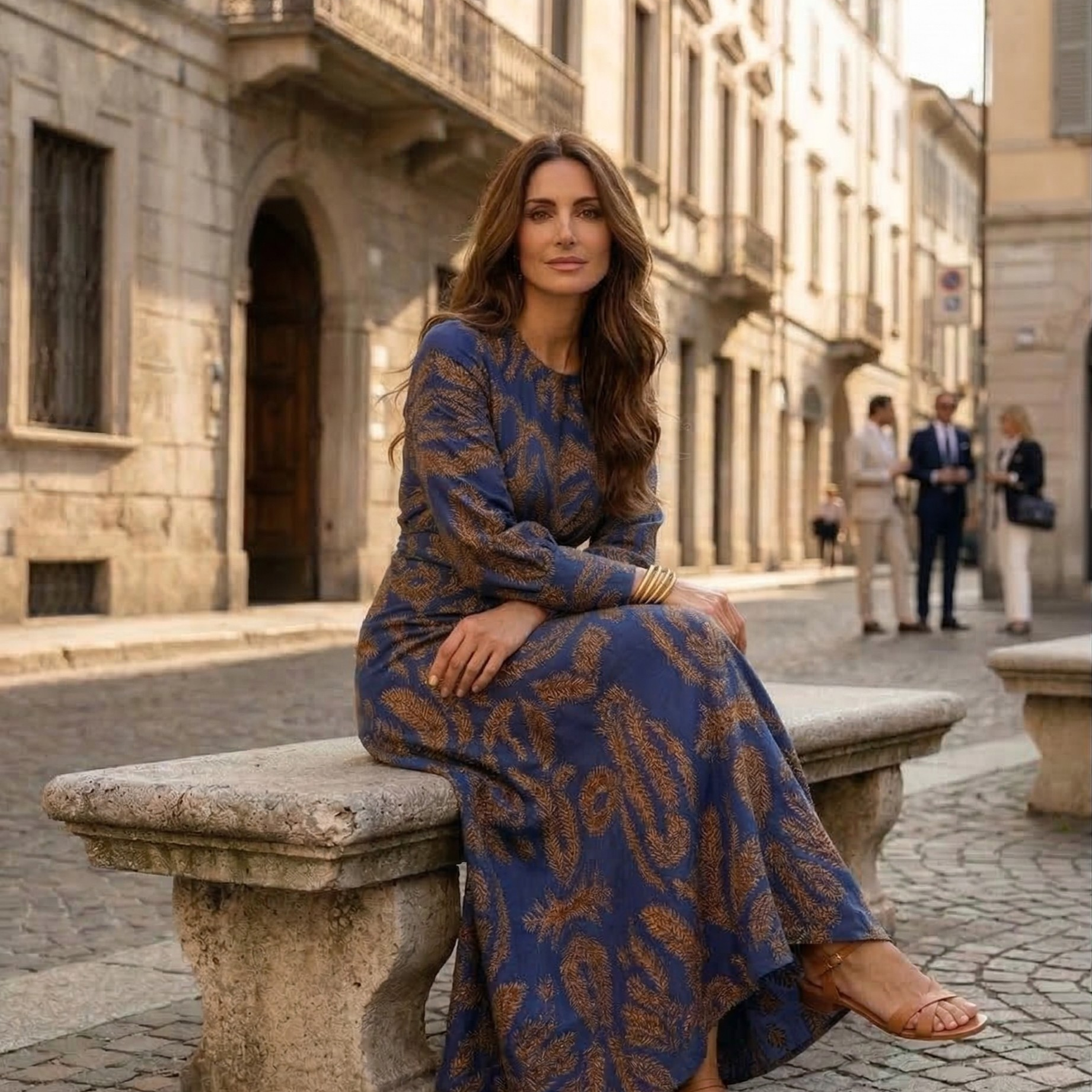 Isadora – Vestido Midi Elegante com Impressão Artística